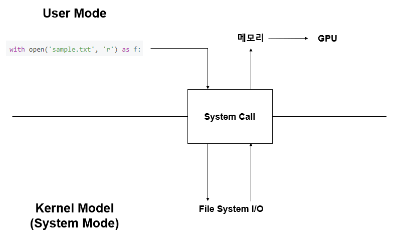 위와 같은 과정을 거쳐서 데이터는 GPU에 올라가게 되는데, 여기서 User Mode와 Kernel Mode는 CPU의 상태를 의미한다. CPU는 디스크에서 데이터를 읽는 것이 아닌, File System I/O Device가 디스크에 있는 데이터를 읽어 CPU에게 전달하는데 이는 CPU가 Kernel Mode일 때만 동작 가능하다. 따라서 디스크에서 데이터를 읽을 때는 User Mode와 Kernel Mode의 Context Switching이 일어나게 된다. 위 그림을 순차적으로 설명하면 아래와 같다.