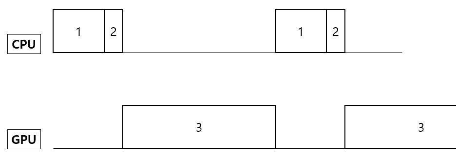 한 Batch는 1, 2, 3의 과정을 거쳐 학습하게 된다. (각 부분의 길이는 상황에 따라 천차만별이다) 물론 메모리에 있는 Batch를 GPU에 올리는 시간도 있지만, PCIe 통신이 매우 빠르기에 (15G/s) 본 포스팅에서는 이를 무시하도록 한다. 각 단계를 설명하면 아래와 같다.