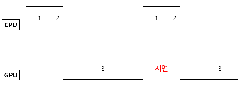 본 파이프라인대로 학습을 하게 되면 무조건 GPU Util이 99%가 되지 않는다. 그 이유는 GPU가 한 Batch 학습을 끝내고 다음 Batch 학습하기 전까지 1+2의 시간 동안 지연이 되기 때문이다. 따라서 GPU Util을 높이기 위해서는 한 가지만을 명심하면 된다.