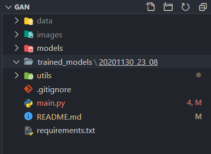 - models : 모델들의 Class 파일이 저장될 폴더 (Generator, Discriminator)